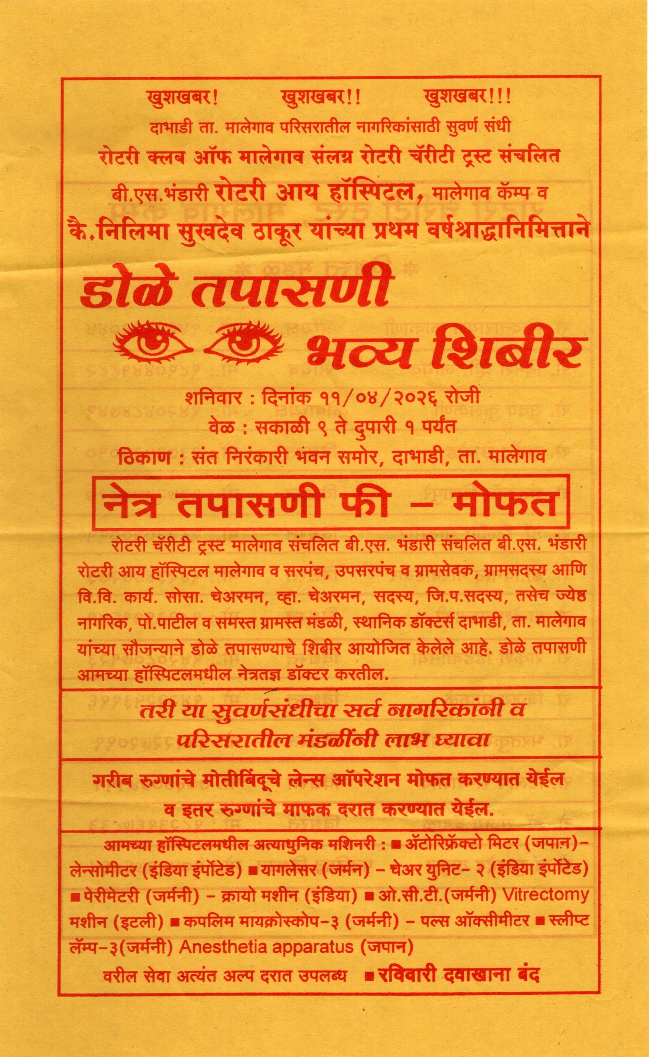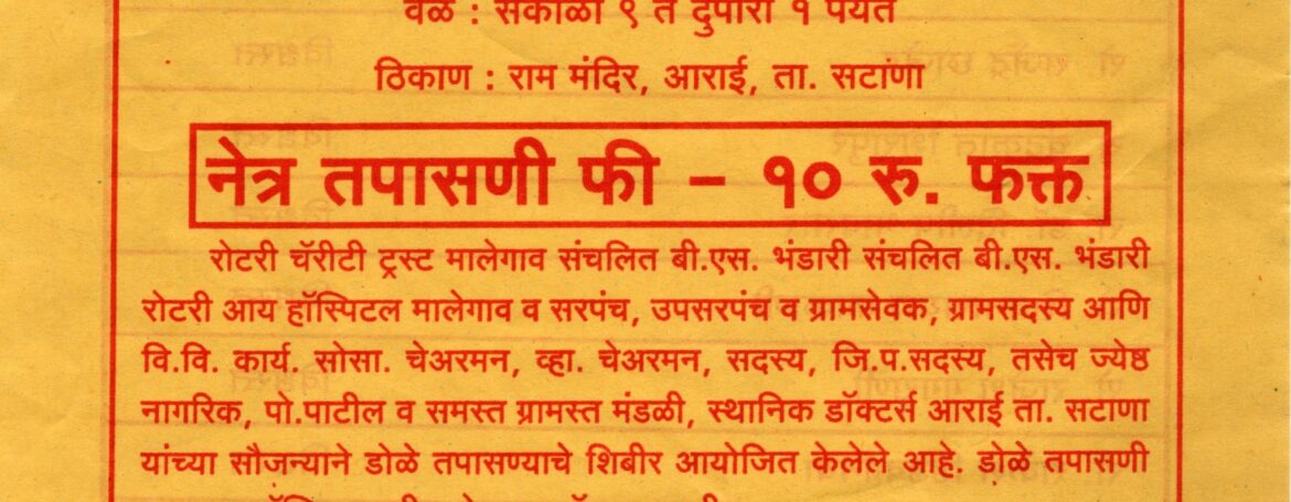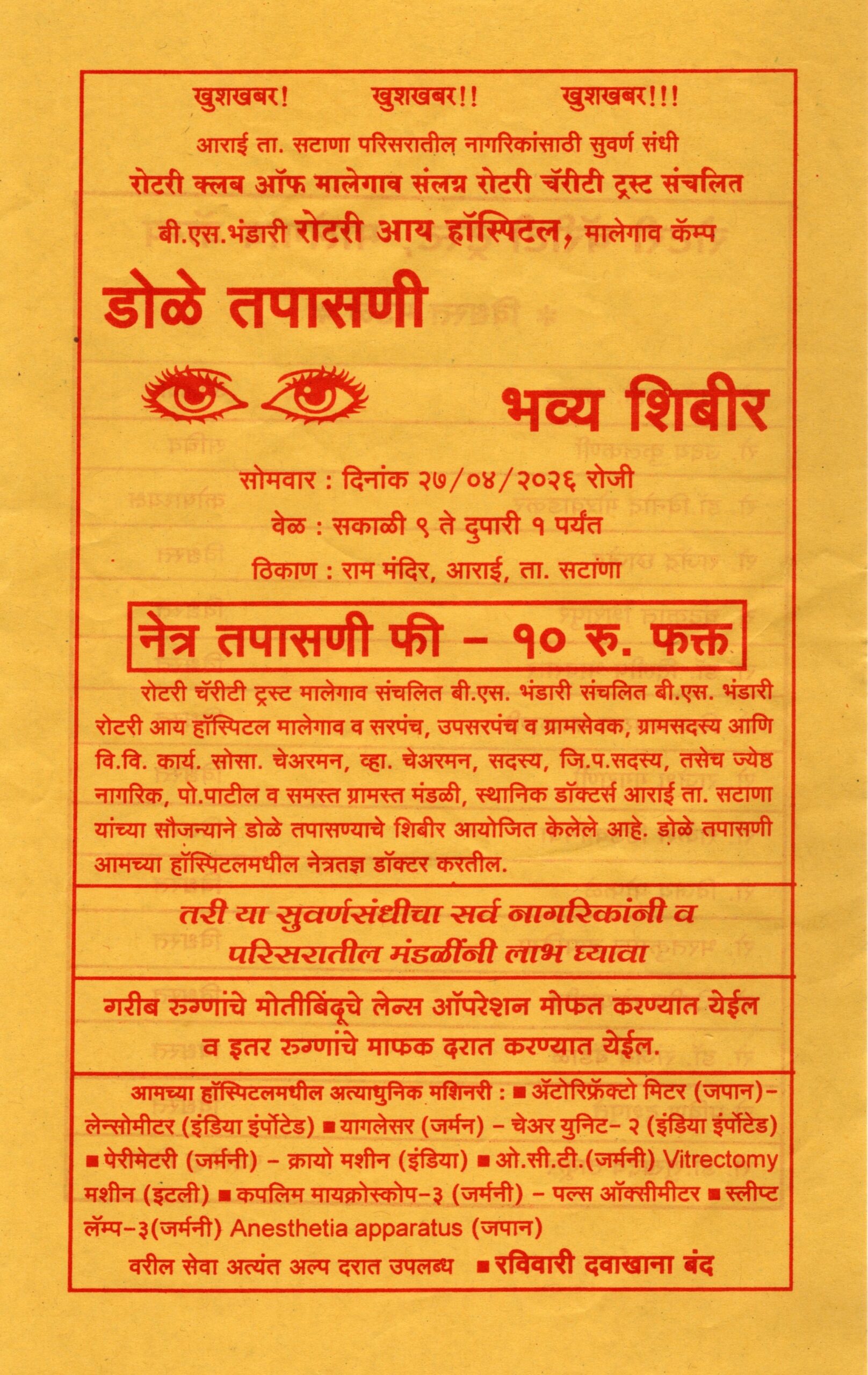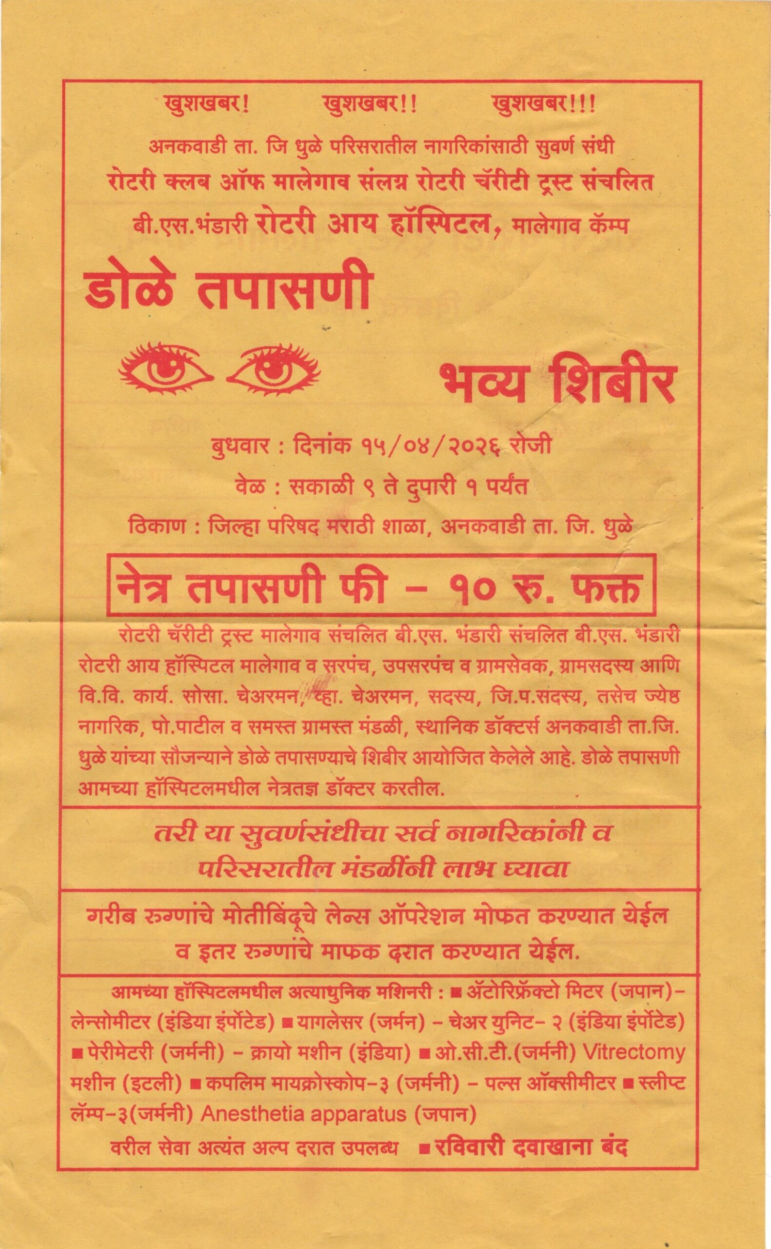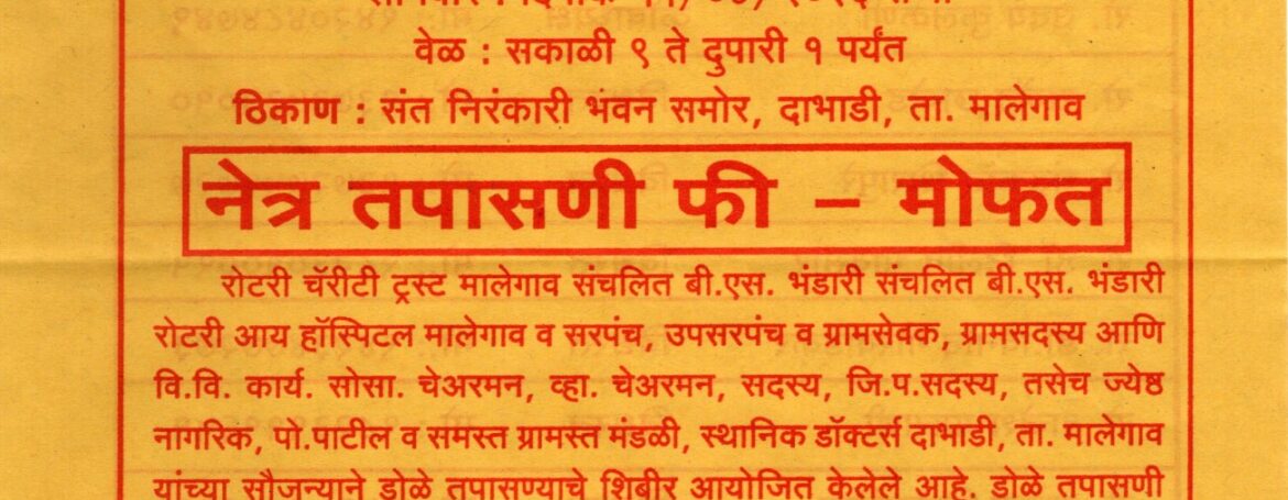रोटरी क्लब मालेगाव व रोटरी आय हॉस्पिटल ,मालेगाव